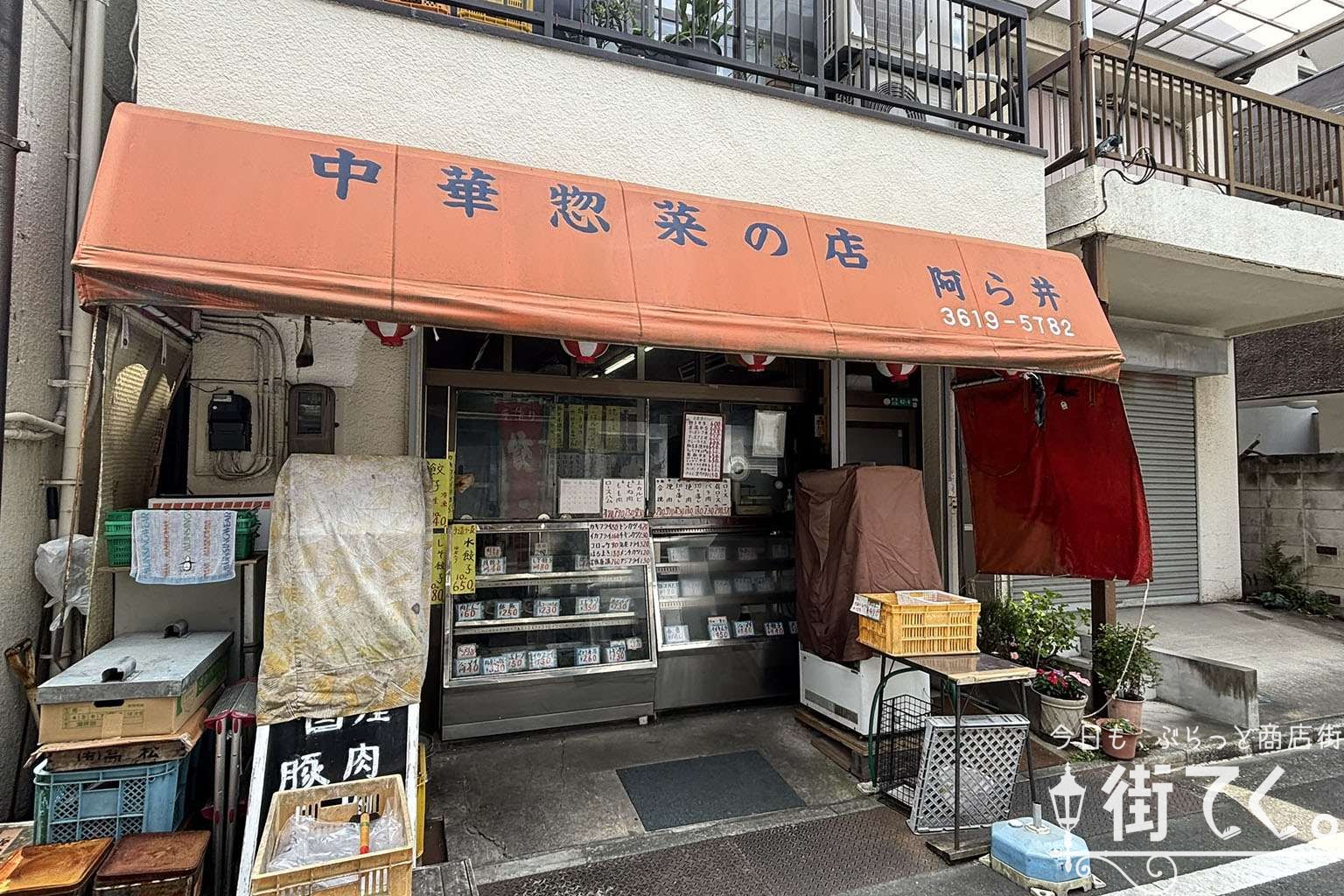 オレンジ色のサンシェードには「中華総菜の店 阿ら井」の文字。