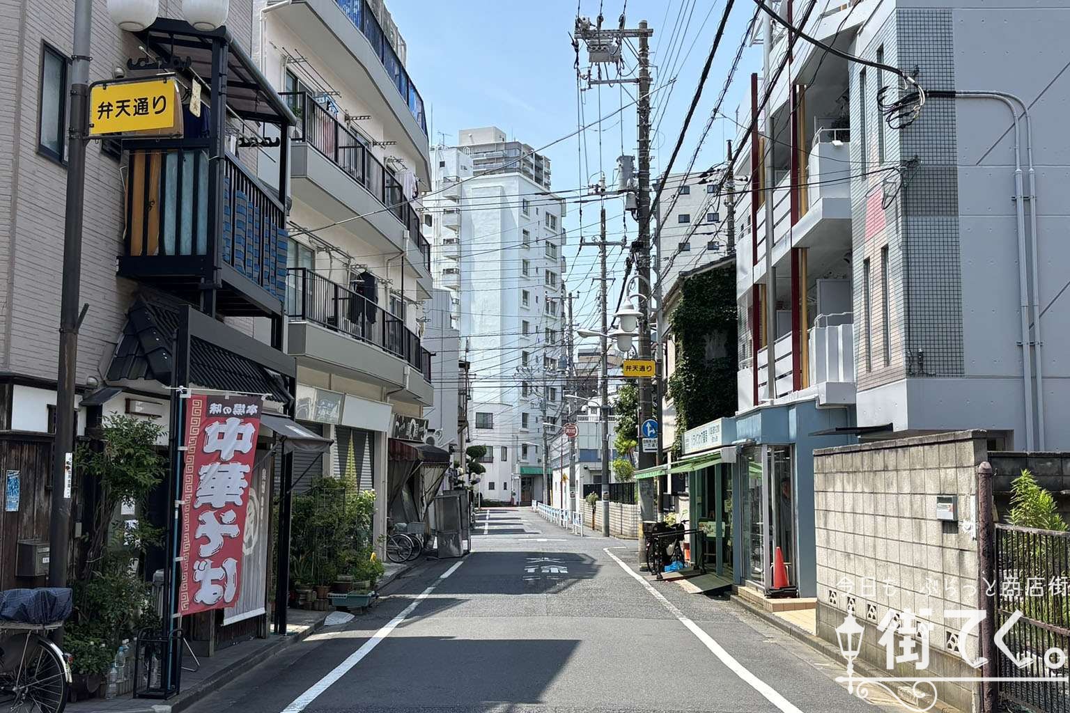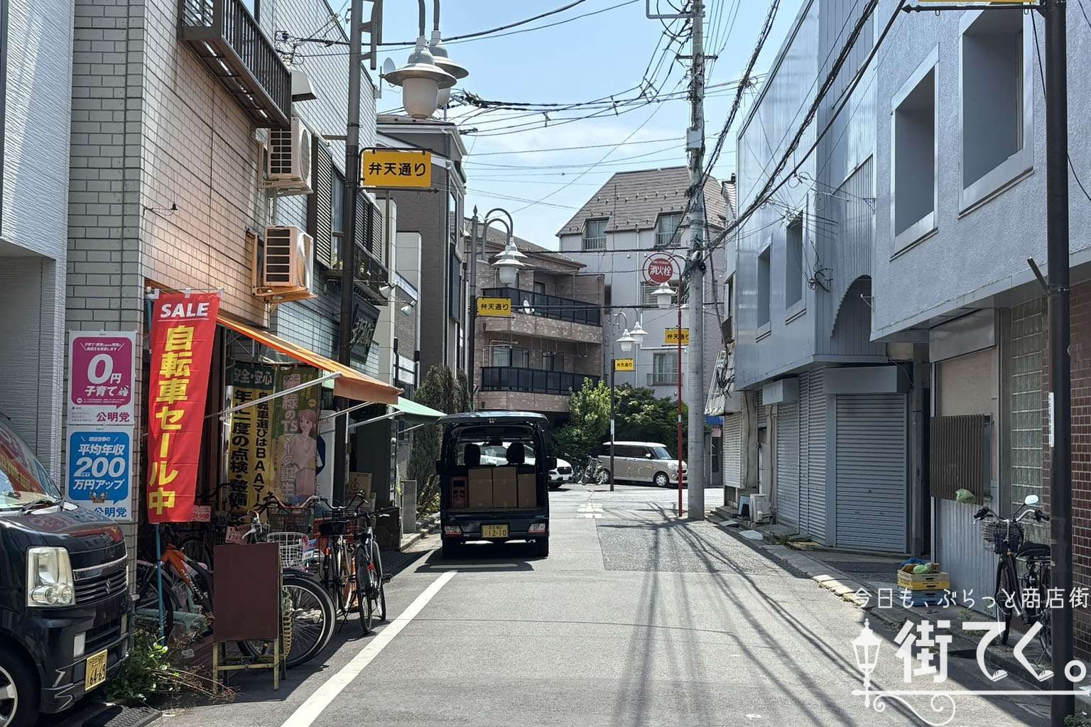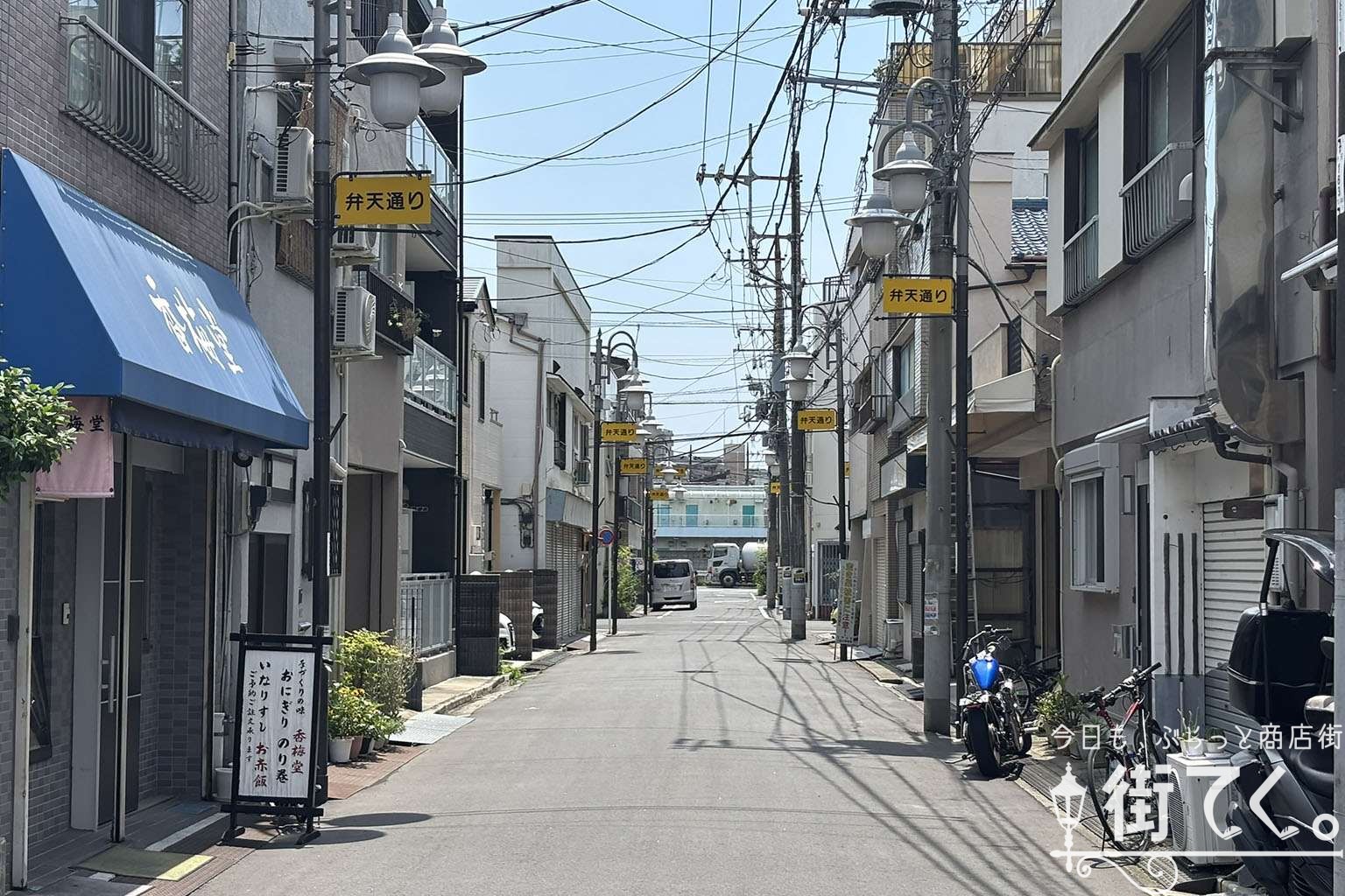 「弁天通り」と書かれた黄色いサインボードに導かれて