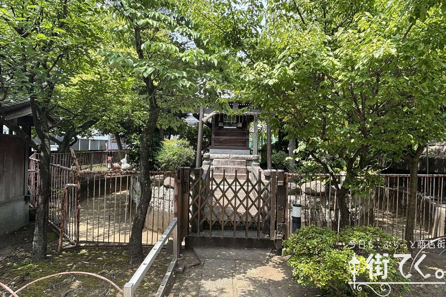 弁天通りを奥まで歩いて行くと、濃い緑に囲まれたい一角があった。