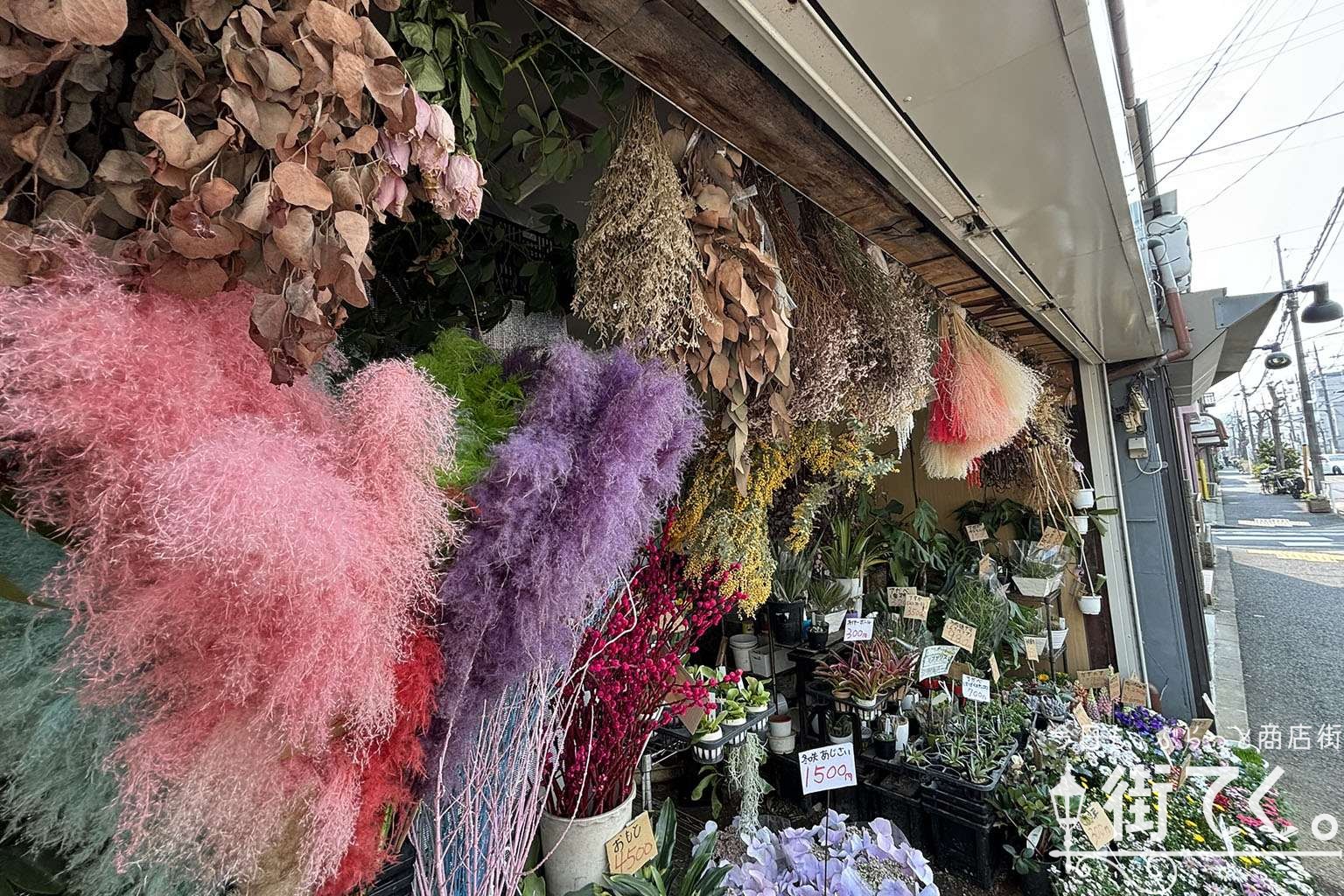 先に進むと色とりどりの花が並ぶ生花店「花菊フラワー」が店を開けていた。