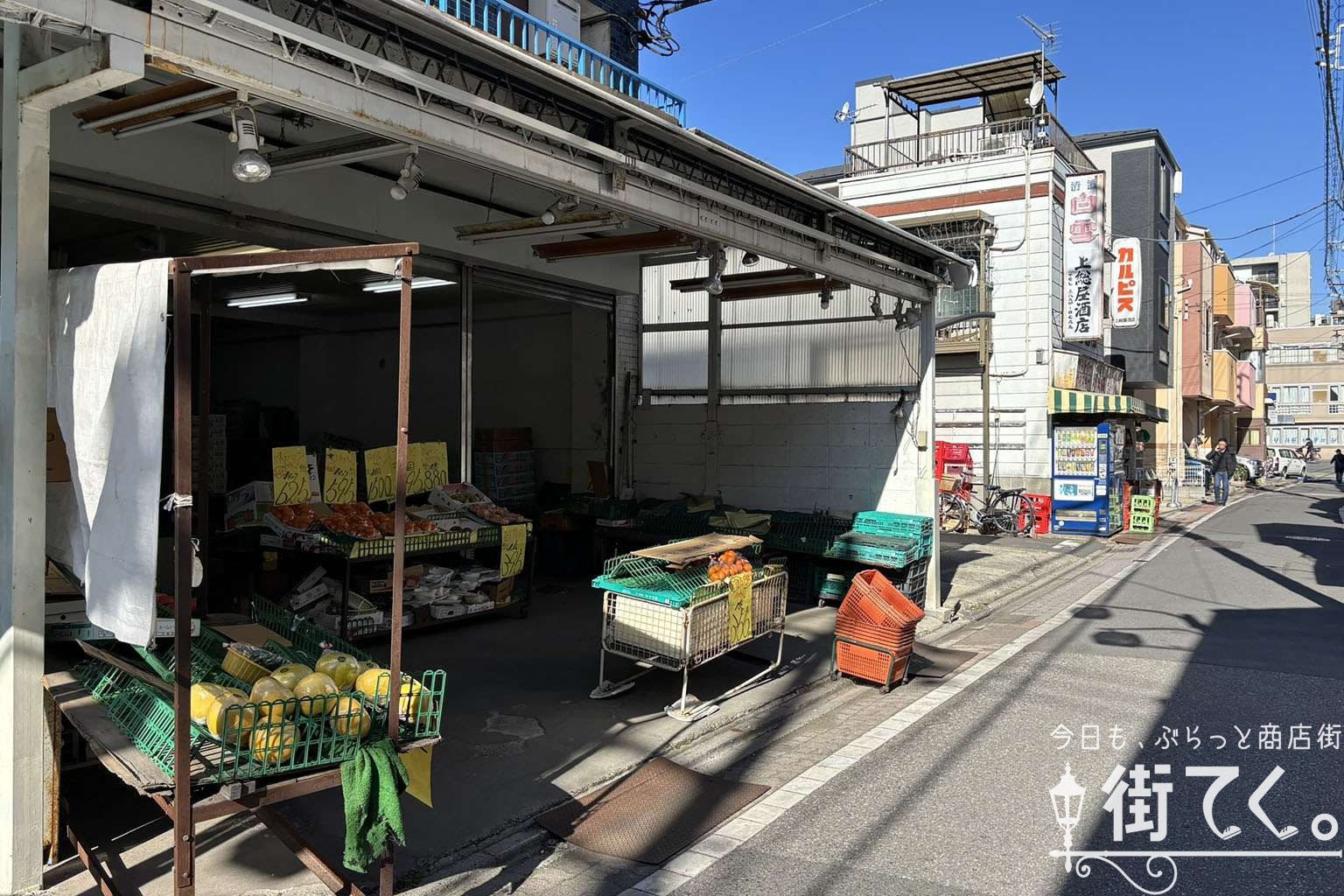 そんな中、酒店と青果店と精肉店がシャッターを上げていた。
