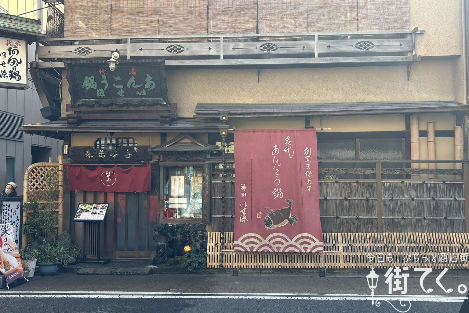 「創業天保元年 名代あんこう鍋」の暖簾が掛かる「いせ源」。